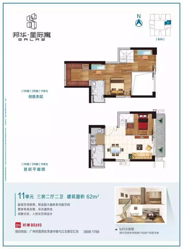 虽然买房首为自住,但如果同时也能带来财富增值,则是锦上添花。纵观目前楼市,兼备自住和投资价值的产品,唯公寓莫属。与市区其他在售商用公寓相比,邦华星际广场在产品居住功能上的打磨更胜一筹。所有户型都带景观阳台设计,而且绝大部分户型还有双阳台设计,绝大多数户型为明厨明厕,并且上下两层都配置卫生间设计,每一个户型设计更人性化更贴近生活。37-84平方米一至四房Loft小复式设计,买一层享两层空间,空间用途多变。