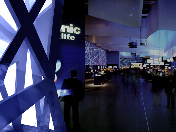 本项目为集高科技、智能化、生态环保等新技术于一身,体现独特文化的标志性公共建筑。该项目关注建筑造型审美情趣的超前性,以简洁和纯粹的形体包容丰富的多层次空间,产生强烈的整体感和震撼的视觉效果,并带来独特的空间印象。造型上强调建筑的体量感,运用微妙体型及细部变化,与周边建筑取得对立统一的和谐关系。运用了多层次的室内外空间,通过“T”形平台与一、二期及东西侧取得联系,建筑内部设有共享大厅、内庭等交流空间,在建筑群体间留出开阔的广场空间,使得该建筑群在空间环境上与周围取得协调。